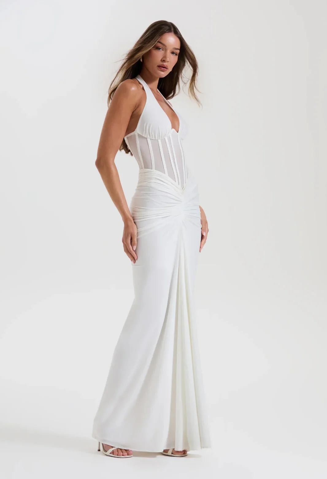 This sheer corset gown was designed for the woman who knows her power. The structured corset dress bodice hugs and lifts in all the right places, while delicate sheer mesh panels add just-enough allure.
